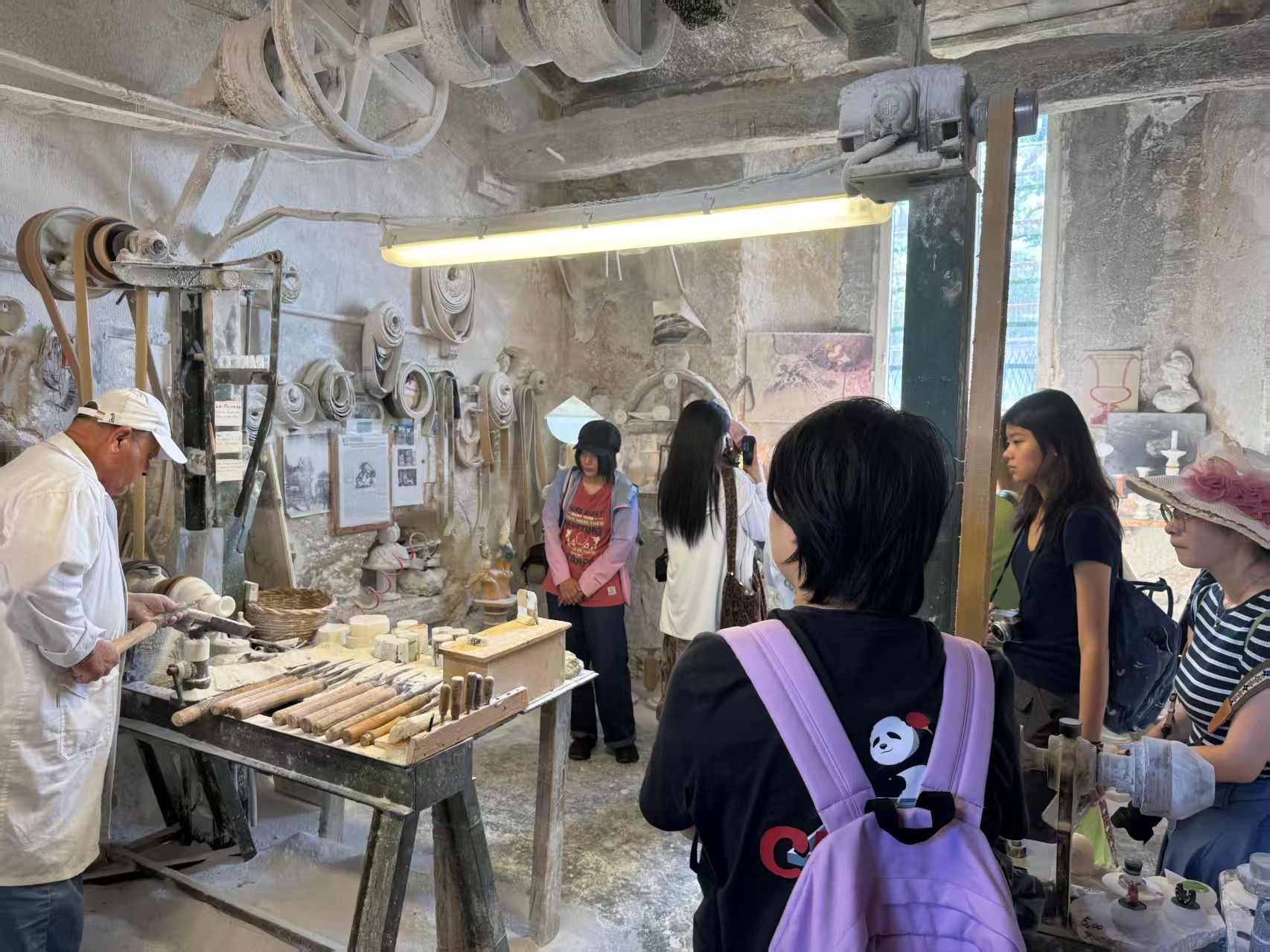 在莱奥纳尔多·达·芬奇的故乡芬奇,同学们实地参观了达·芬奇纪念馆,馆内珍藏着与达芬奇相关的众多珍贵文物和资料,从他早期稚嫩却充满灵气的画作手稿,到后期那些具有划时代意义的伟大发明设计图,以及根据手稿还原出的各种设备仪器,这些藏品无不体现出达芬奇在艺术、科学、工程等多个领域的卓越成就。达芬奇与齐白石这两位分别来自东西方艺术巨擘的雕像在纪念馆中并肩而立,他们的相遇,让同学们深刻体会到艺术的魅力是跨越国界、超越时代的。