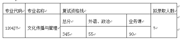 根据北航2018年硕士研究生招生复试资格基本线,结合我院招生指标及考生上线人数,经学院研究生招生复试工作小组讨论决定,我院文化传播与管理专业2018年硕士研究生招生复试资格基本线如下: