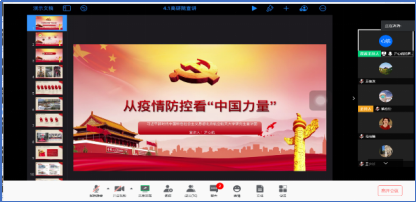 本次学习日活动通过网络主题学习的形式开展,内容丰富、针对性强,既提高了学生们对疫情防控阻击战中中国力量的理解与认识,深刻感受中国制度优势,又增进了同学们的爱国热情,取得了良好效果。