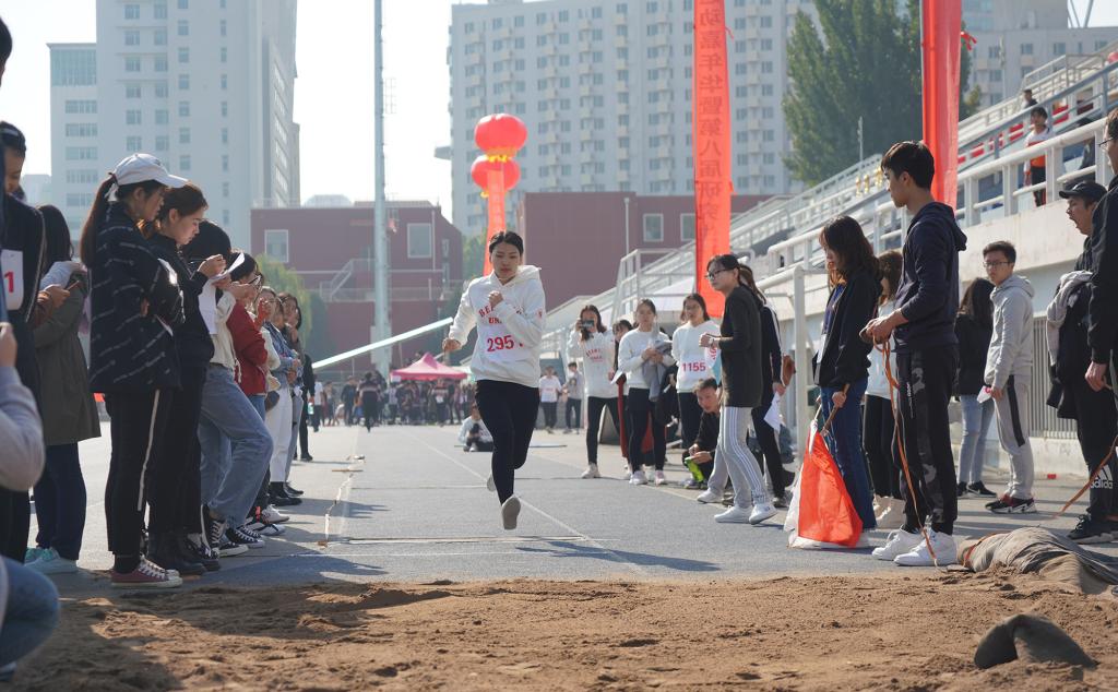 黄海军副校长为开幕式致辞,他指出学校围绕“在体育锻炼中享受乐趣、增强体质、健全人格、锤炼意志”的研究生体育活动目标,提出了“运动北航、筑梦翱翔”的体育活动赛事理念,并创新设立了杯赛制度,运动会开始,我院文化传播与管理专业甄奕和哲学专业张敏分别参与了女子100米短跑和女子跳远项目。两位运动员在赛场奋力拼搏,永不服输的精神感染了在场的同学。在“众星捧月”集体趣味运动会项目上,同学们在体育委员的指令下配合默契齐心协力,最终取得了优异的成绩。